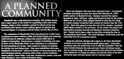 It winds through some of the lesser known aspects of Mandeville history, from the original plans to its transition from a lakefront resort town to a quiet bedroom community of New Orleans (as a result of the Lake Pontchartrain Causeway).