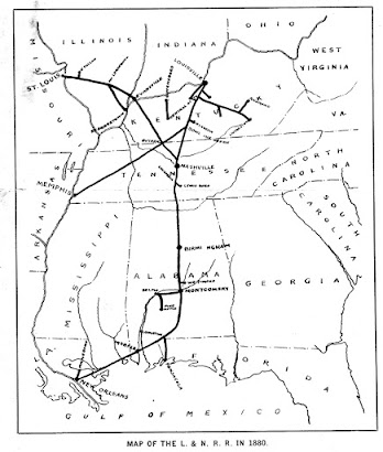 The Old Reliable's further march through Dixieland was achieved by two closely-linked steps ; first, the purchase of the majority of the stock of the Mobile and Montgomery Railway, some 180 miles long, on January 15, 1880, and, second, through the leasing of the Mobile, New Orleans and Texas Railroad Company on May 8, 1880. (It was subsequently purchased outright by the L. & N. on October 5, 1881.)
